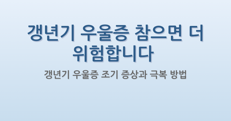갱년기 우울증 참으면 더 위험합니다 조기 증상과 극복 방법