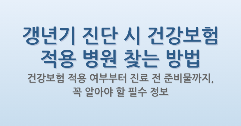 이 글에서는 갱년기 진단을 받을 수 있는 건강보험 적용 병원을 찾는 방법부터, 진료 항목별 적용 여부, 주의할 점까지 하나하나 상세하게 알려드립니다.