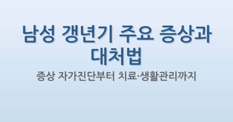 갱년기는 더 이상 여성만의 전유물이 아닙니다. 남성 갱년기는 중년 이후 나타나는 신체적·정신적 변화로, 삶의 질을 크게 떨어뜨릴 수 있습니다. 하지만 제대로 인식하고 대응한다면, 건강하게 이 시기를 극복할 수 있습니다.