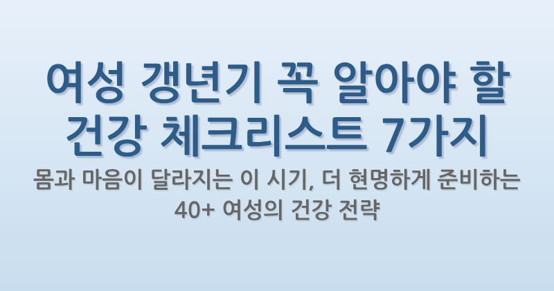 지금부터 갱년기 여성들이 반드시 챙겨야 할 건강 체크리스트 7가지를 소개합니다. 자가진단부터 실천 가능한 팁까지, 한 번에 정리해드릴게요.