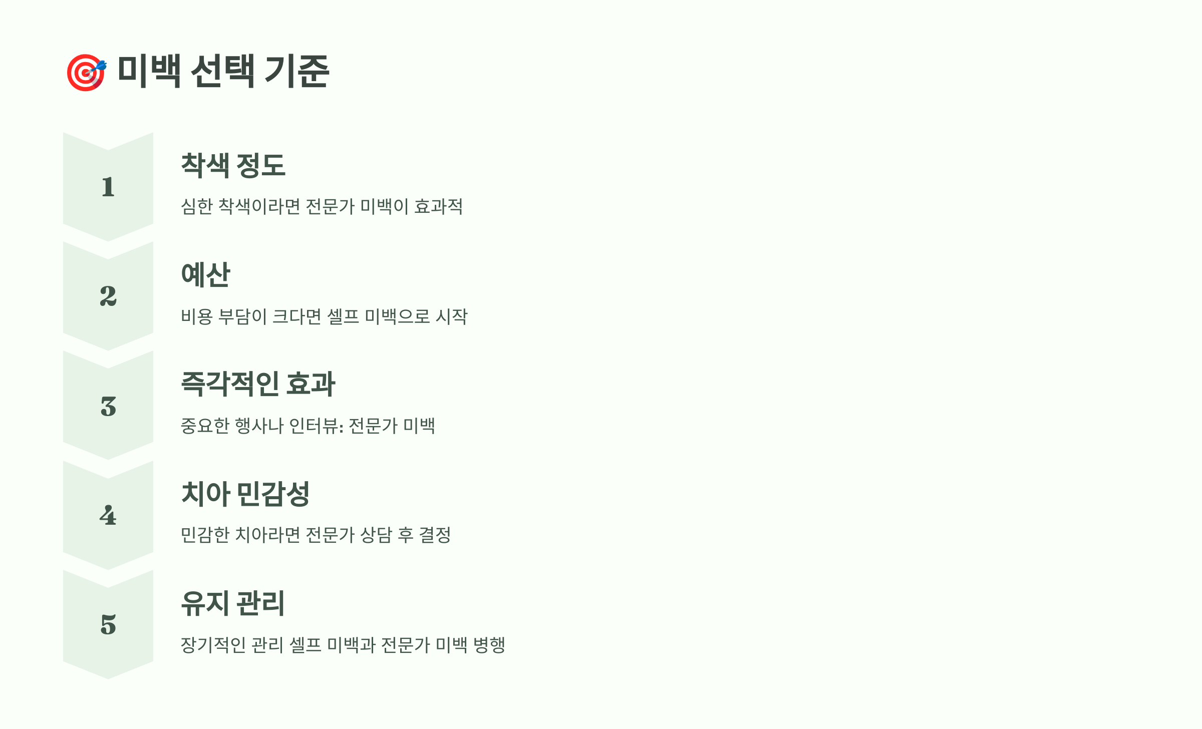 2️⃣ 예산: 비용 부담이 크다면 셀프 미백으로 시작해 보세요