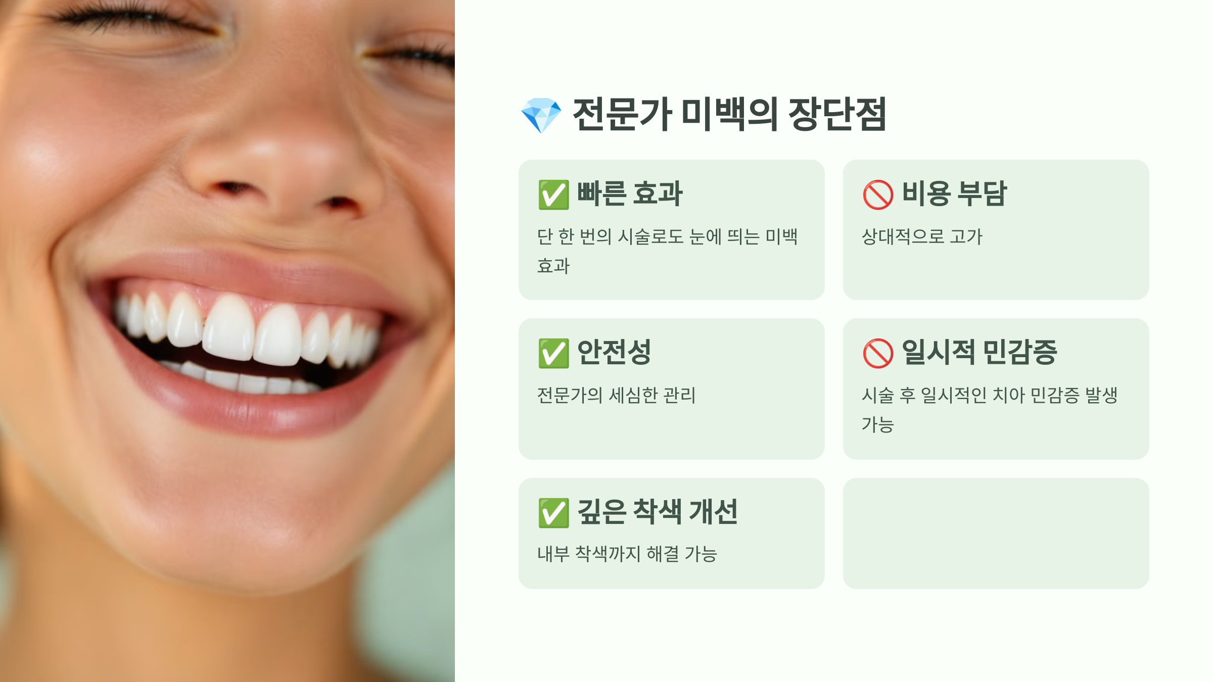 4️⃣ 치아 민감성: 민감한 치아라면 전문가 상담 후 결정하는 것이 좋습니다