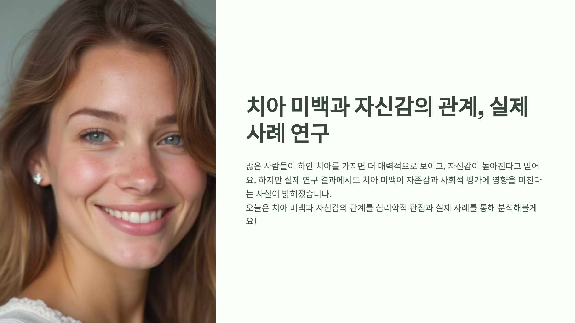 오늘은 치아 미백과 자신감의 관계를 심리학적 관점과 실제 사례를 통해 분석해볼게요!