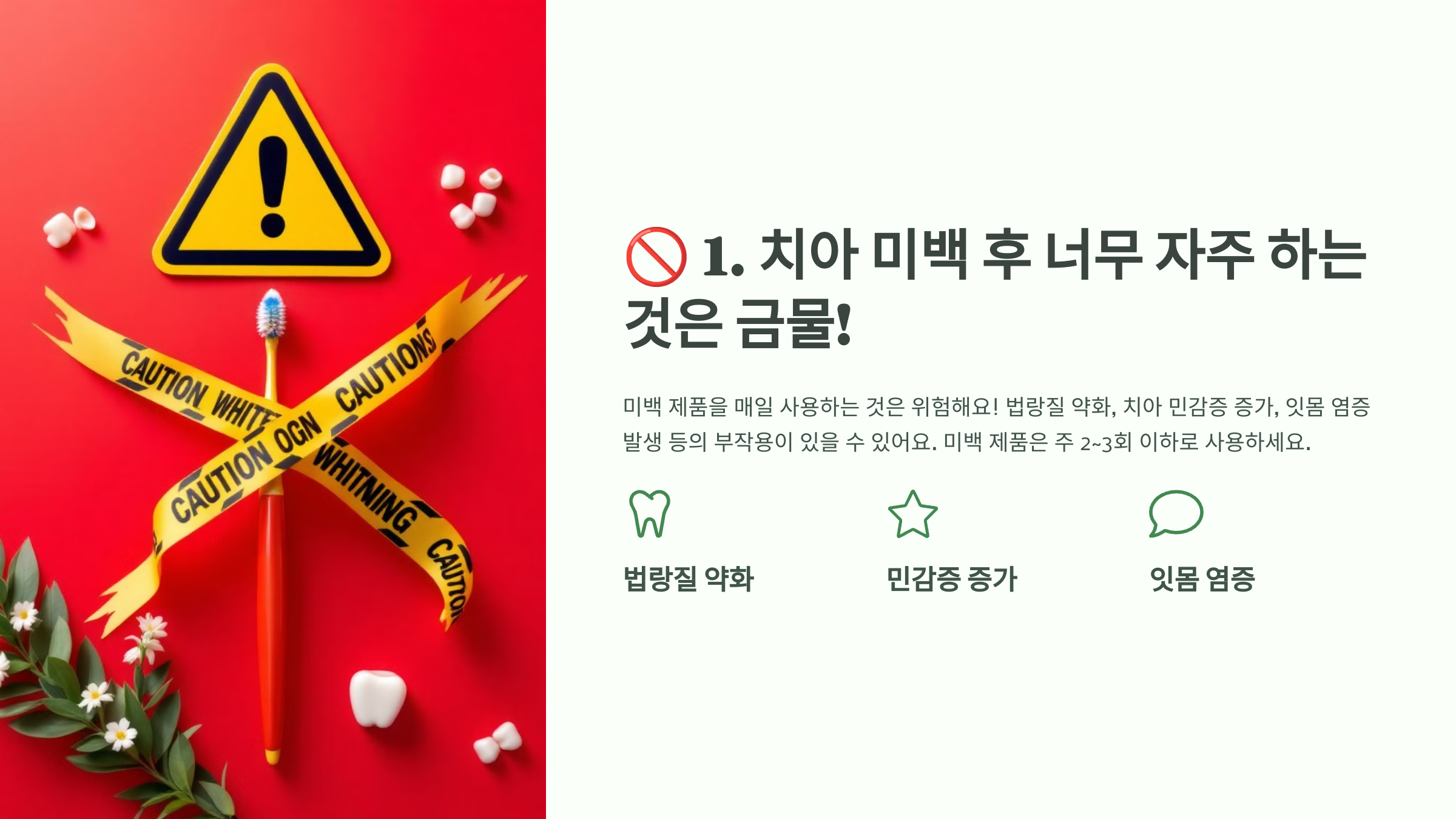 🚫 1. 치아 미백 후 너무 자주 하는 것은 금물!
