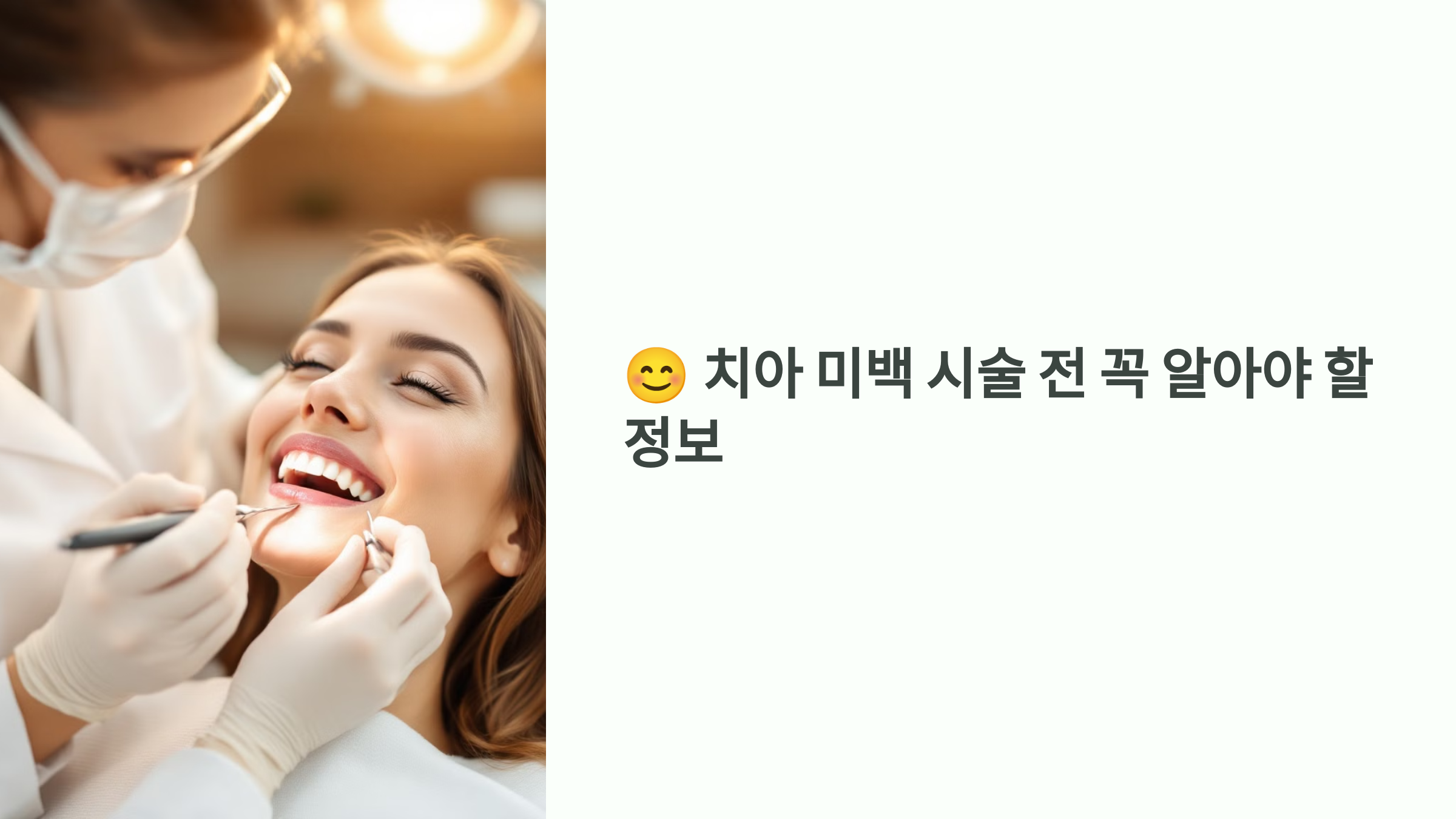 하얗고 밝은 치아는 많은 사람들의 꿈이죠! 🦷 하지만 치아 미백 시술을 받기 전에는 반드시 알아야 할 중요한 정보들이 있습니다. 오늘은 시술 전 반드시 알아야 할 효과, 주의사항, 부작용 및 관리 방법까지 꼼꼼히 정리해 드릴게요.
