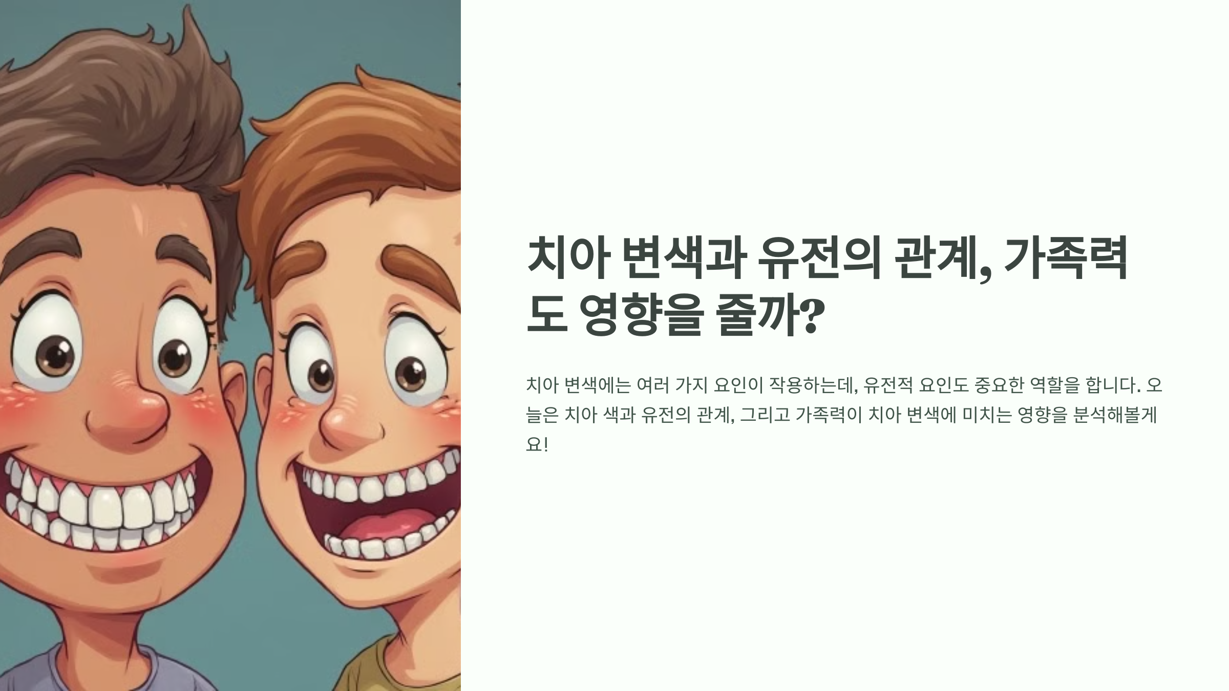 오늘은 치아 색과 유전의 관계, 그리고 가족력이 치아 변색에 미치는 영향을 분석해볼게요!