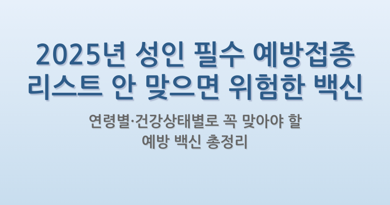 2025년 성인 필수 예방접종 리스트 안 맞으면 위험한 백신